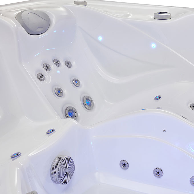 Оснащенный насосом 1500W LX и нагревателем 3000W LX, спа-бассейн обеспечивает интенсивный водный поток и стабильный нагрев воды. 31 точно расположенная форсунка создает эффект профессионального массажа, снимая напряжение с мышц спины, плеч и ног.